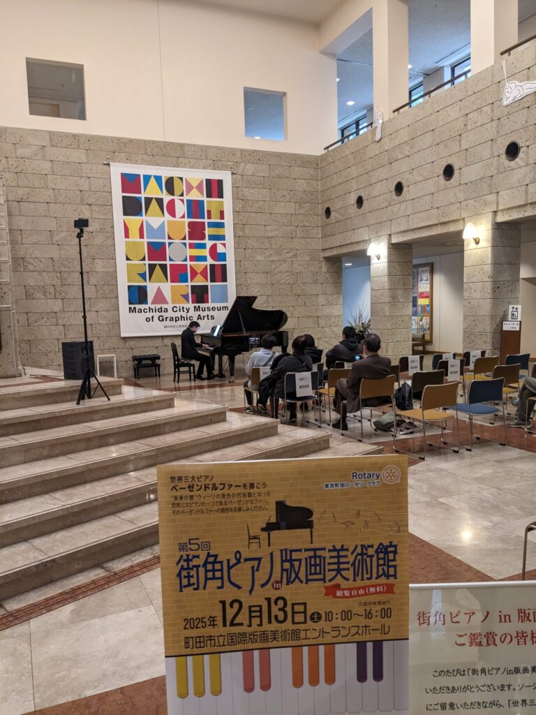 並行して美術館ホールにて第5回「街角ピアノin版画美術館」というイベントを行った。