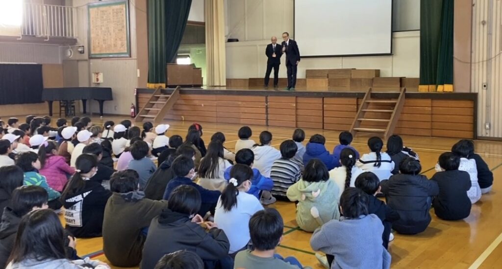 U16プログラミングコンテスト八王子大会にて3校を表彰し、後日3校に伺って大型モニターを寄贈し子供たちの前で表彰式を行いました。